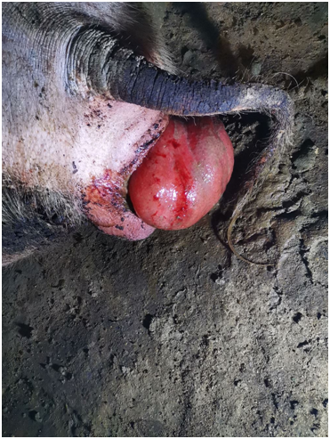 養(yǎng)豬人:一頭懷孕母豬在109天發(fā)現(xiàn)有脫肛現(xiàn)象,睡著的時(shí)候會(huì)脫肛出來(lái),讓它站立起來(lái)就恢復(fù)。今天是懷孕的112天,比以前嚴(yán)重很多,睡著的時(shí)候脫出來(lái)有15厘米的長(zhǎng)度,而且站立后都不能完全復(fù)原,請(qǐng)問(wèn)老師,這怎么處理?母豬全程飼喂大北農(nóng)母豬料,有加生物脫霉劑!